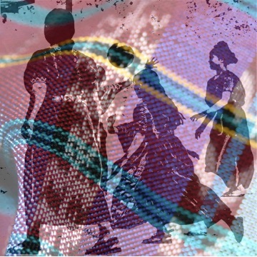 In diesen digitalen Arbeiten, auch Fotocollagen genannt, verschmelzen Fotos von Personen, Landschaften und Textilien zu einem neuen Ganzen. Aneinander