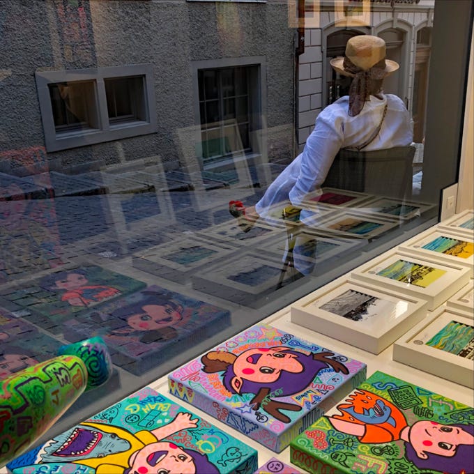 Was gibt es Schöneres, als durch eine Stadt, ein Dorf zu schlendern und in die Schaufenster zu gucken. Dabei offenbart sich einiges, gerade auch, wenn die Fensterscheiben zudem noch die Umgebung, vielleicht auch die Tages- oder Jahreszeit widerspiegeln.
