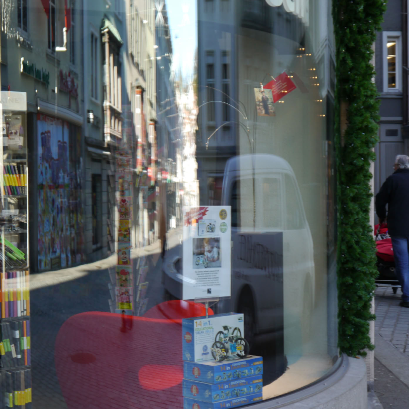 Was gibt es Schöneres, als durch eine Stadt, ein Dorf zu schlendern und in die Schaufenster zu gucken. Dabei offenbart sich einiges, gerade auch, wenn die Fensterscheiben zudem noch die Umgebung, vielleicht auch die Tages- oder Jahreszeit widerspiegeln.